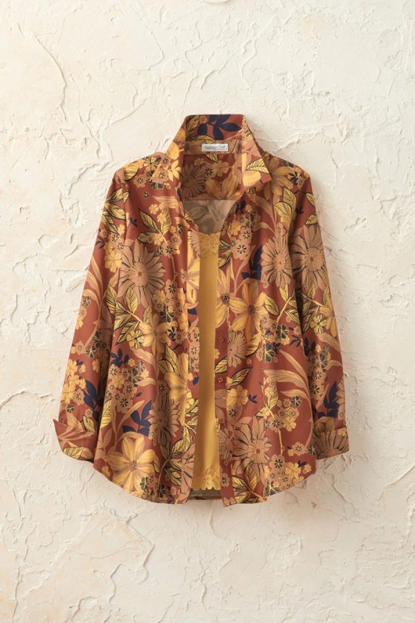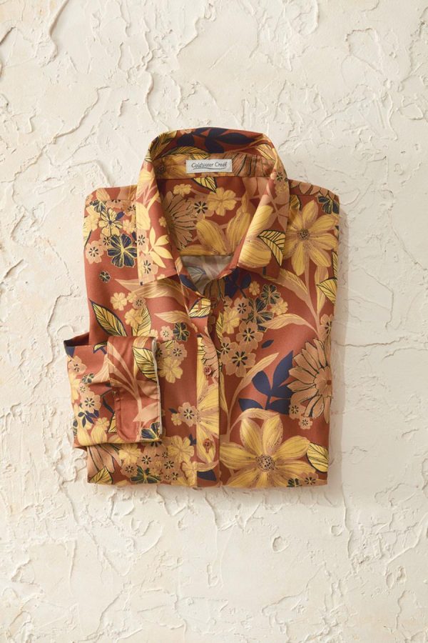 The warm-hued floral print No-Iron Shirt in midweight, wrinkle-free, easy-care cotton goes from dryer to out-the-door with effortless ease. Its versatile design maintains a fresh, crisp look throughout the day for confident style you can count on. The shirt’s crease-resistant wear makes it an essential for work, weekends, and travel. Features reinforced placket for durability, curved hem, and long sleeves with button cuffs. Slightly shaped fit, hits low hip.