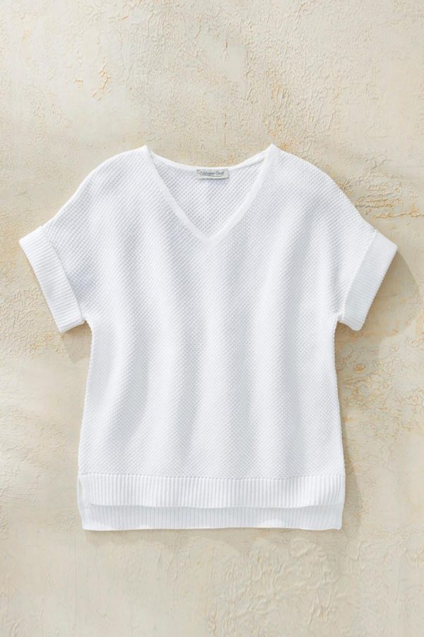 With its touchable, textural knit and versatile silhouette, this pullover will stay at the top of your sweater drawer. Soft yet substantial, with cuffed dolman short sleeves.