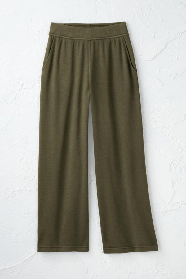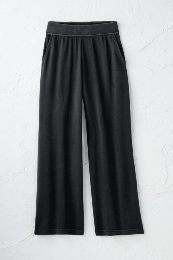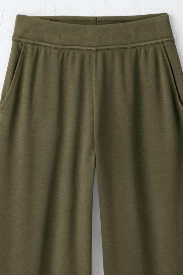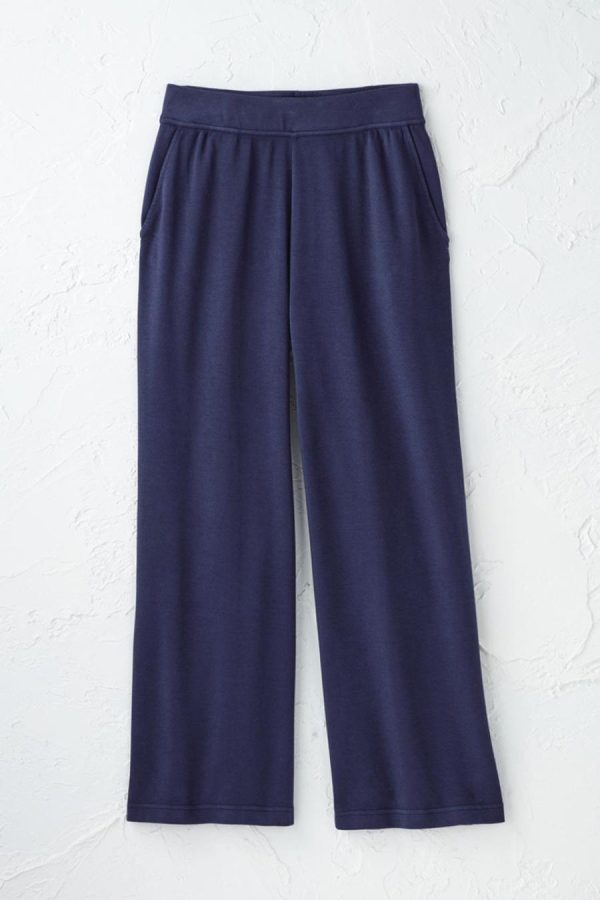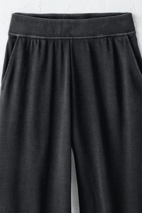 Soft, durable cotton pairs with superior stretch in these travel-ready crops. Comfortable wide leg shape allows easy movement, with a wide pull-on waist, front slant and back patch pockets.