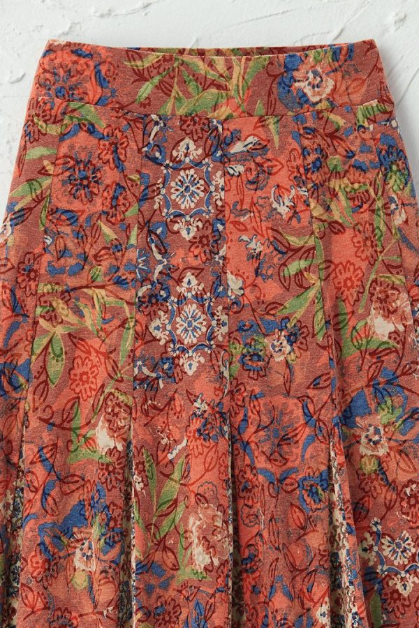 This pull-on knit midi skirt is lightweight and relaxed, with floral and medallion prints on our gently textured burnout fabric – plus godet insets for movement and flare. Wide comfort waistband.