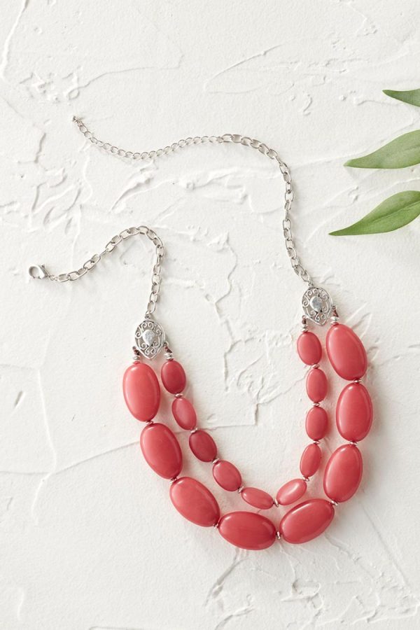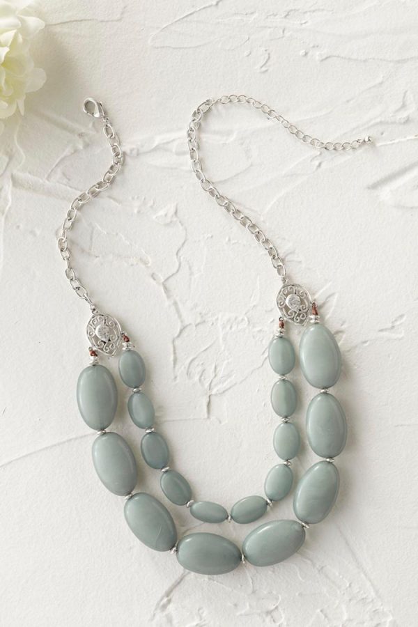 Dual strands of smooth stones add a dramatic pop of color. Wine is dyed jade, Midnight Navy is genuine sodalite.