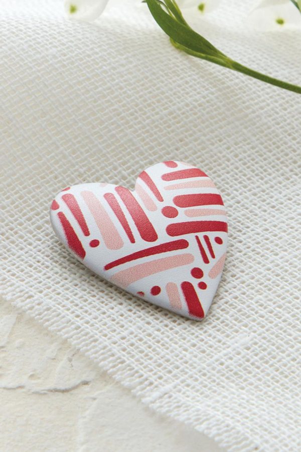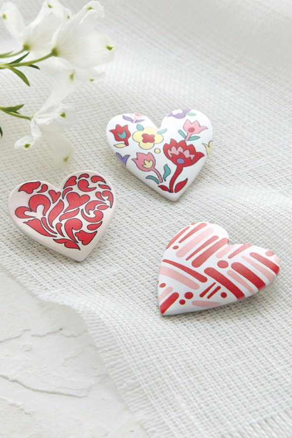 Wear your heart … however you want. These artful pins are specially painted to create a unique expression on sweaters, scarves, hats and more. Latch-and-catch closure.