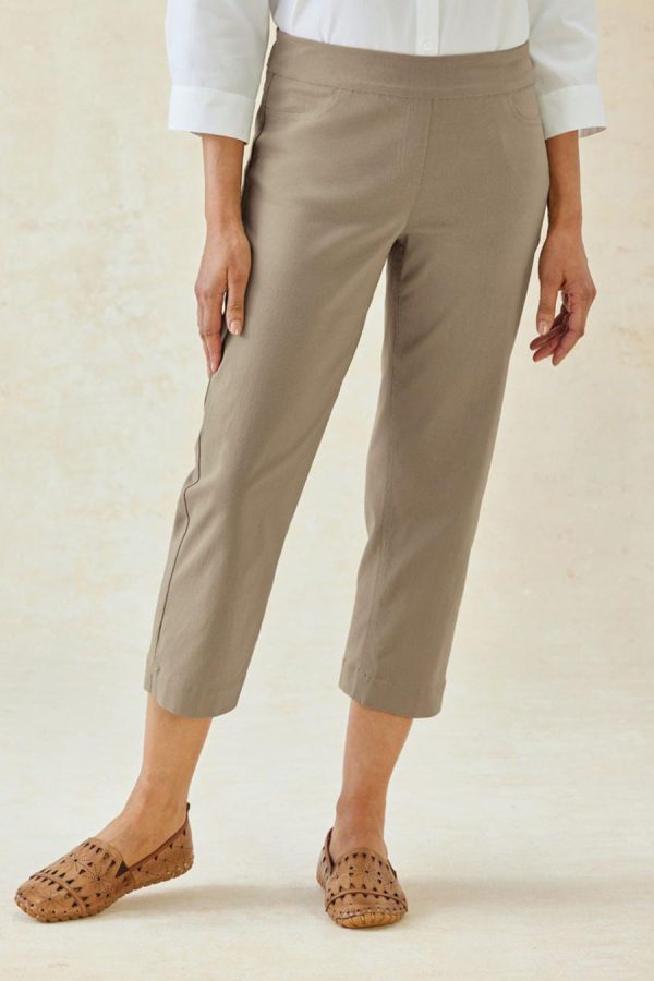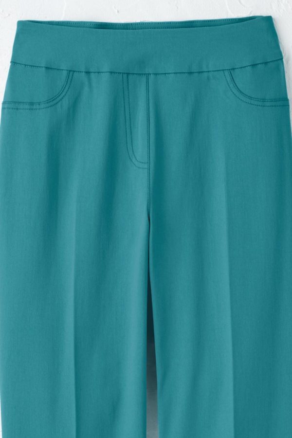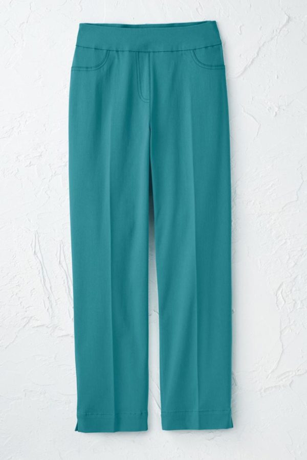 Our best-selling pull-on pants, now in a great summer length – with a flexible tummy control panel to slim you comfortably. Smooth, wrinkle-resistant fabric offers 4-way stretch and resilience. Faux front pockets and fly, side-slit hems. Slim lines fit close to the body.