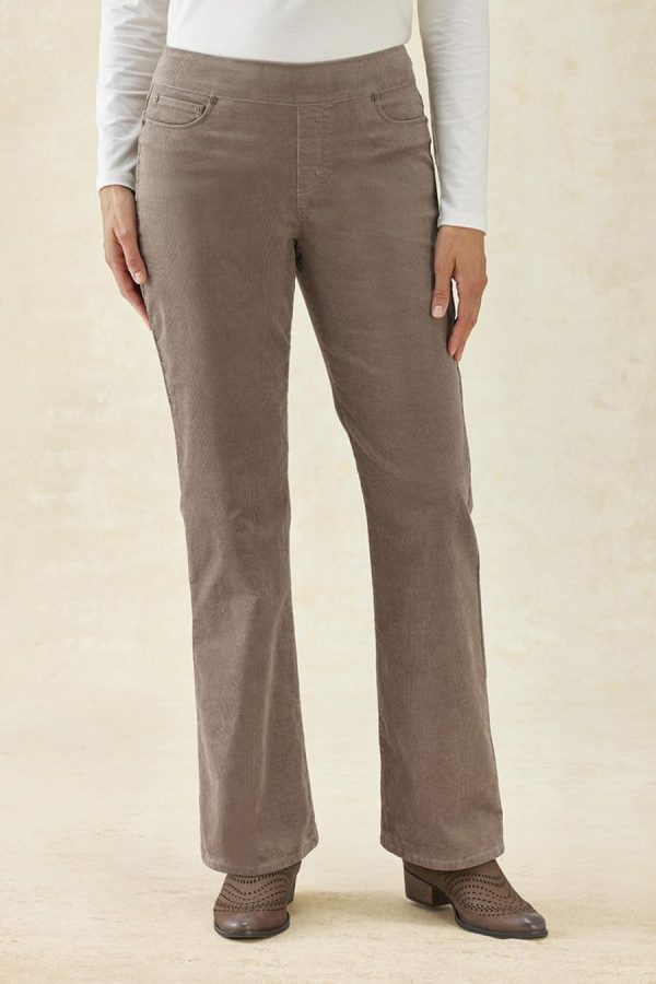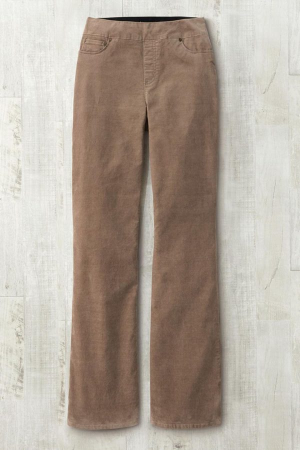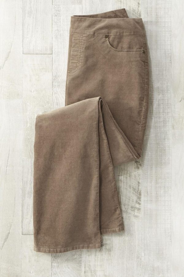 These pull-on corduroy pants combine comfortable ShapeMe® tummy control technology with the convenience of an elastic waistband and classic 5-pocket styling. Soft to the touch with a hint of stretch, and faux fly.