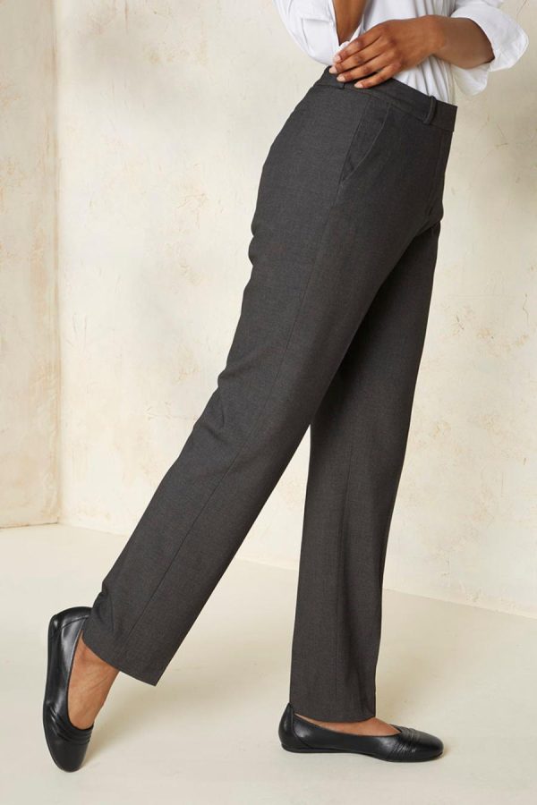 Smooth and easy, these tailored pants feature two-way stretch and a hidden tummy-control panel to trim you comfortably. Fly front, angled front and back welt pockets.