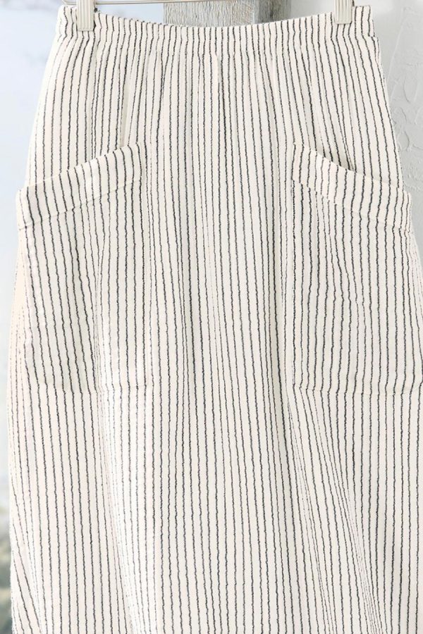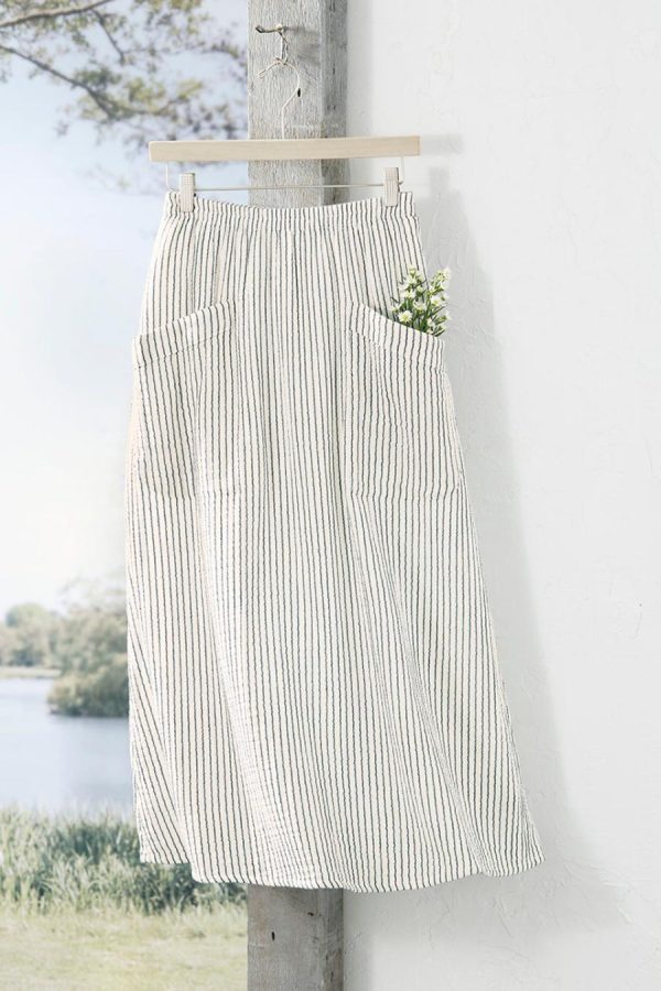 Breeze through summer in this lightweight skirt – naturally textured in our favorite gauze, with fine blue stripes and oversized patch pockets.