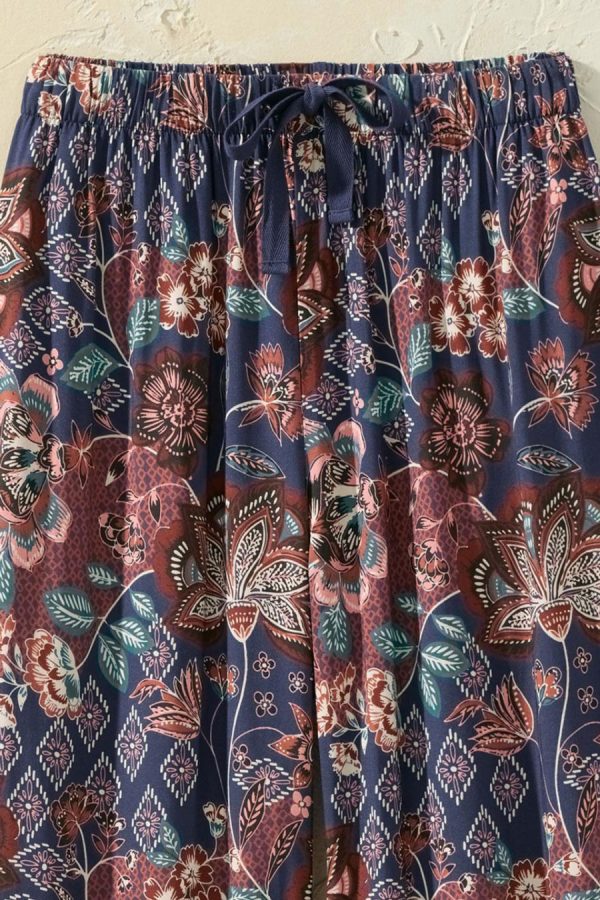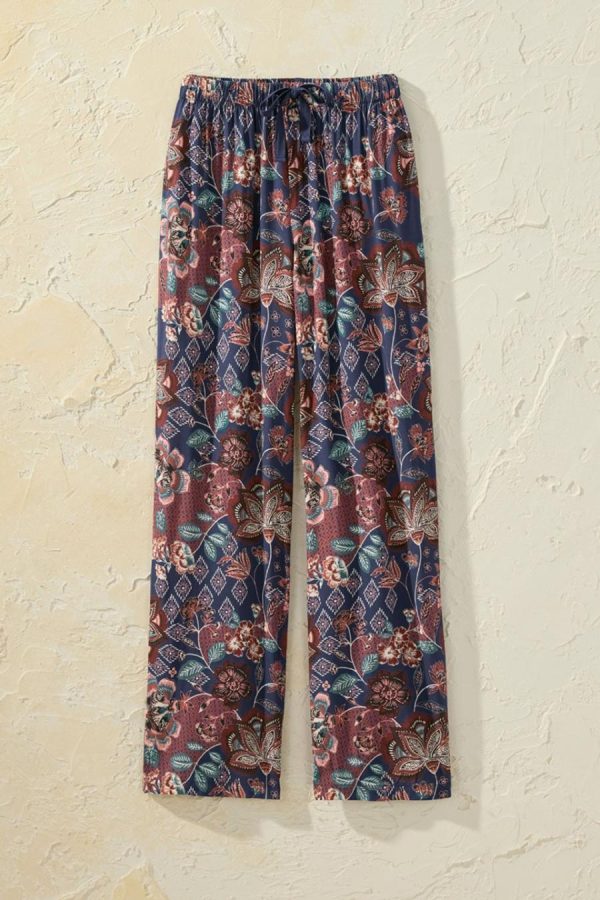 Easy, lightweight pants for any day of the week, patterned with a mix of artful florals and subtle geometrics. Pull-on style is smooth and drapey, with an elastic drawstring waist and on-seam pockets.