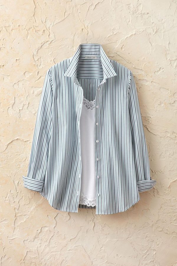 A clean-lined look – and hassle-free time-saver – in our wrinkle-free 100% cotton. Back yoke, reinforced front placket and curved hem.