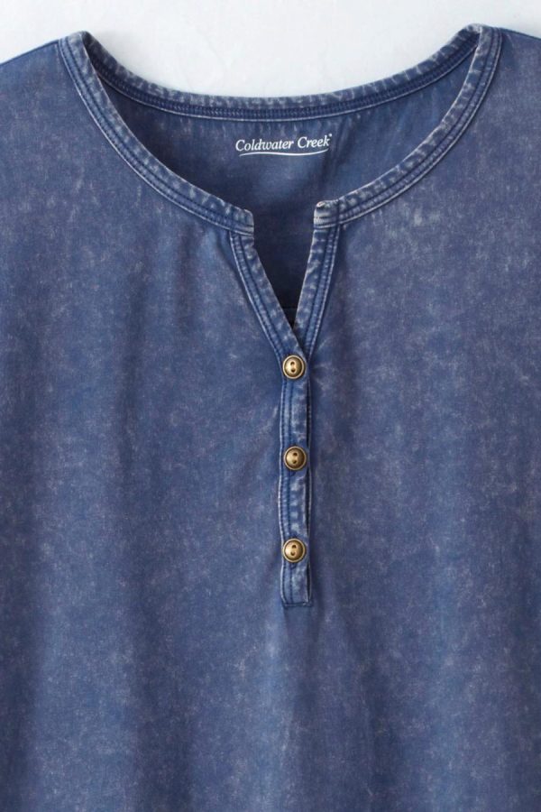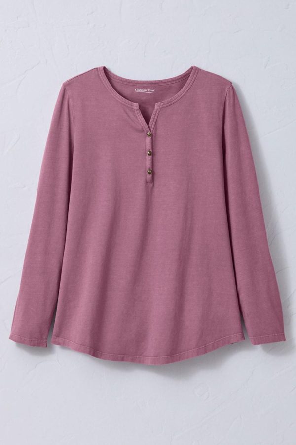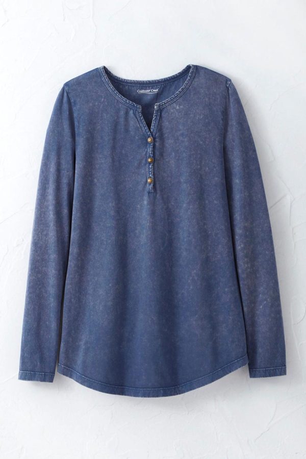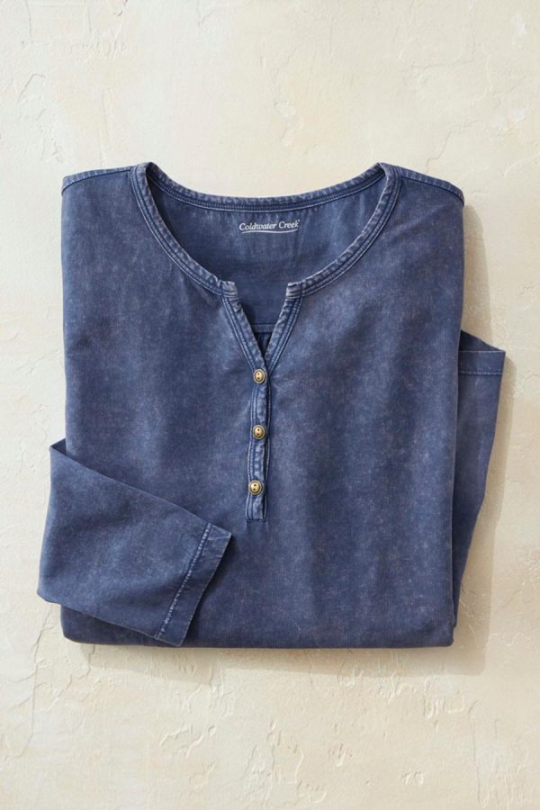 This Vintage-Wash Solid Long-Sleeve Henley is a favorite style, in our special wash that creates subtle color variations – so each tee is unique. Comfortable and breathable in lightweight cotton knit, with metal buttons, shirred back yoke and rounded hem.