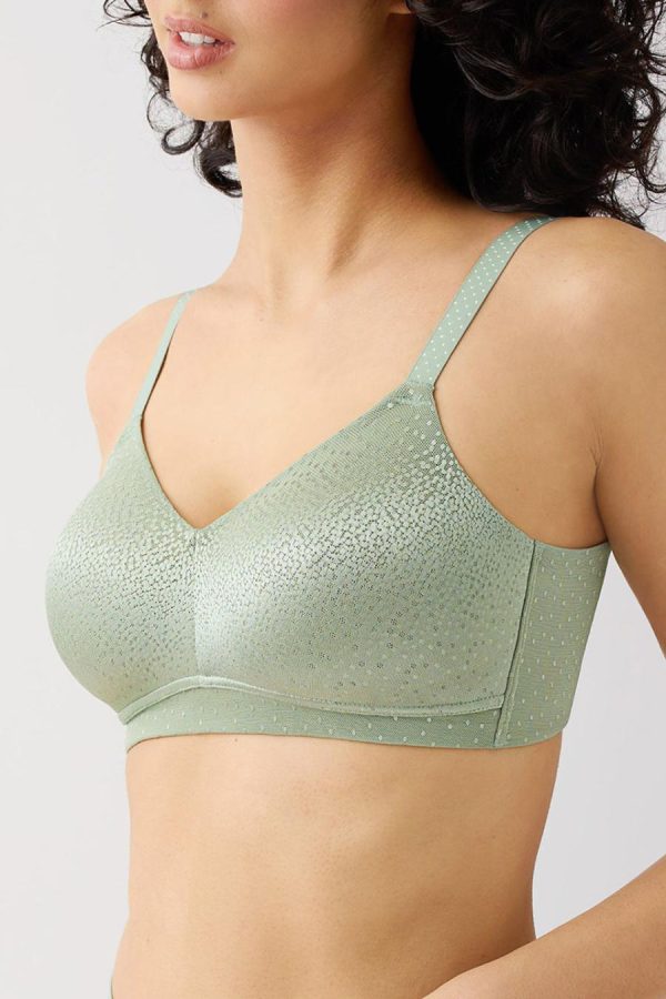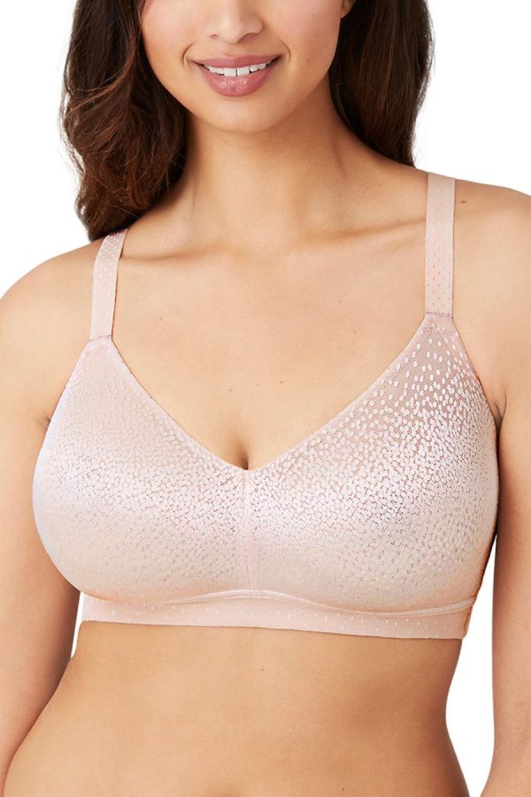 This back-smoothing bra features a band of micro-thin spacer fabric to minimize back and side bulge to create flawless lines. Seamless, mid coverage 2-ply cups have soft inner fabric and hidden slings for added support and shaping. Distinctive dot-jacquard sheen.Extra side/back coverage